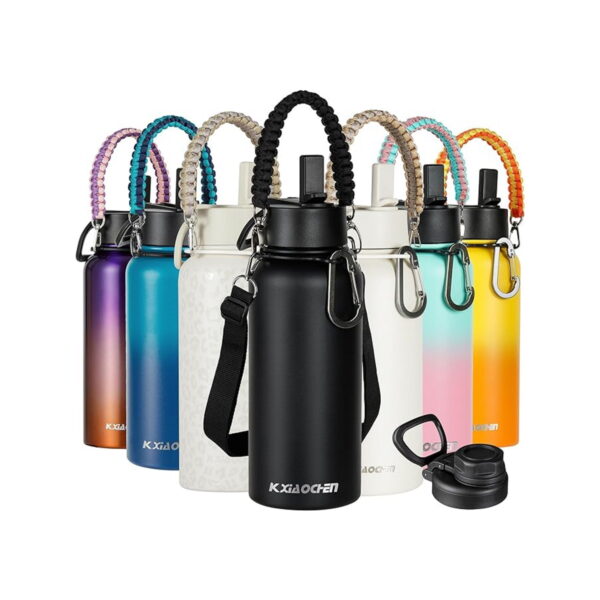 Paracord Handles & Strap:32 oz water bottles Equipped with high quality colorful nylon braided Paracord Handles, bid farewell to the uncomfortable grip feeling, make the lifting more relaxed! Insulated 32 oz water bottle also comes with a 70.86 inches retractable strap, which can be worn directly on the body to free your hands and allow you to ride, climb, hike, rock climb and surf freely.